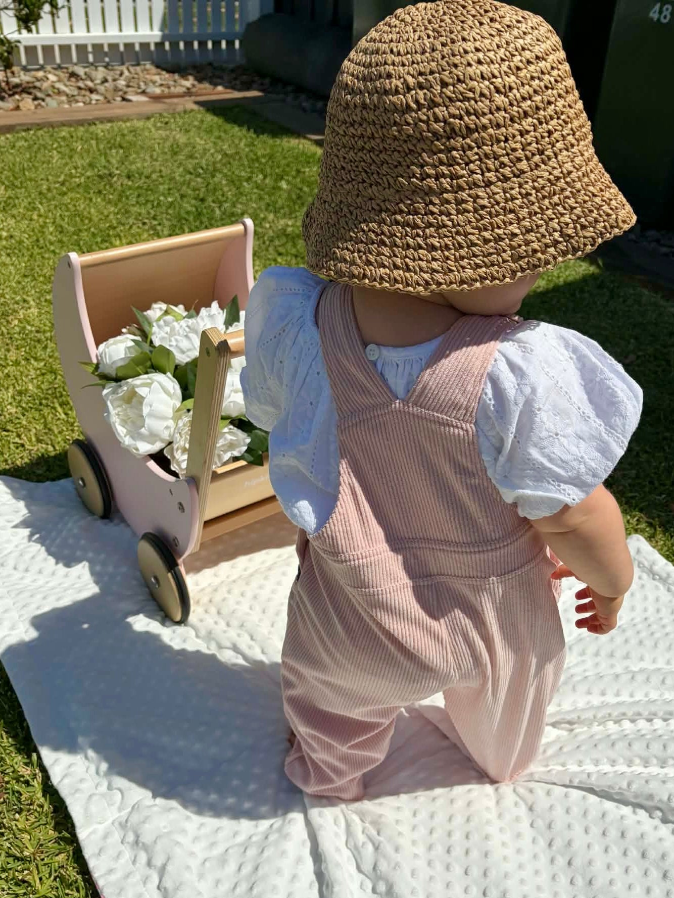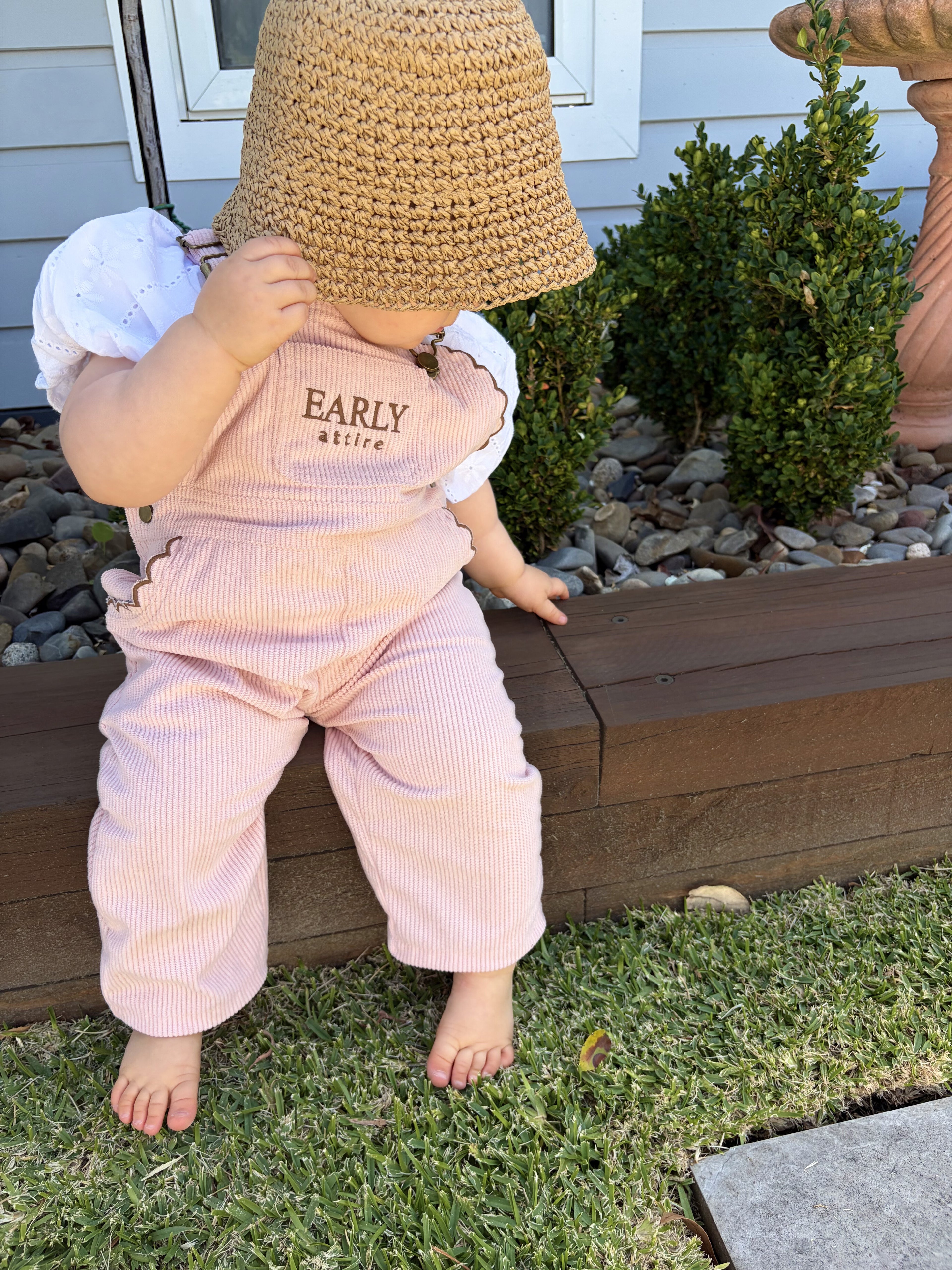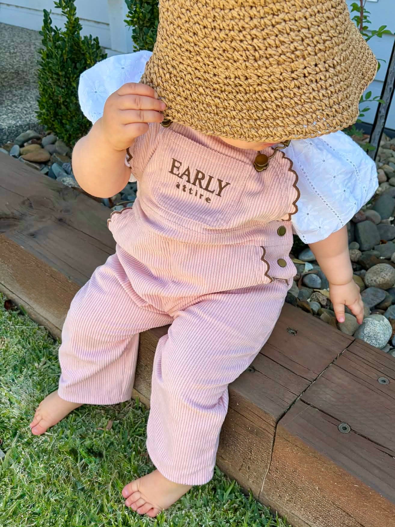 Crafted from soft ribbed corduroy in the dreamiest blush tone, these overalls are designed with comfort and charm in mind. Featuring delicate chocolate scallop detailing, 100% cotton lining for extra comfort, antique brass hardware, and adjustable straps for the perfect fit, theyβre equal parts playful and timeless.